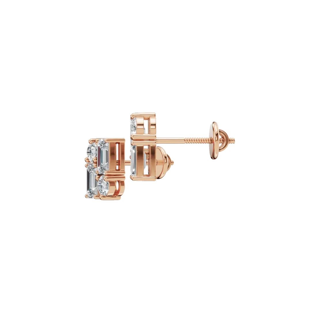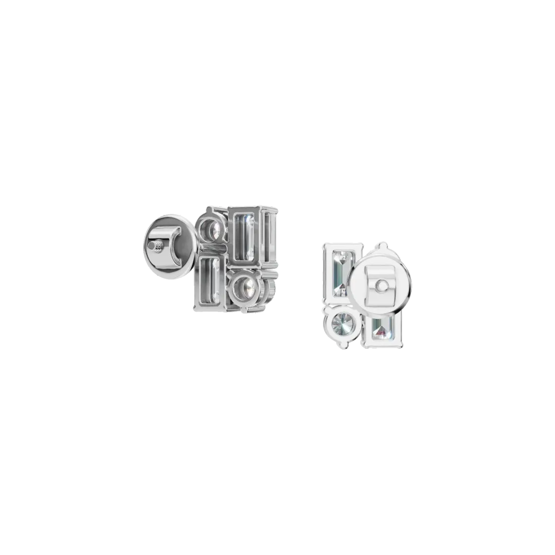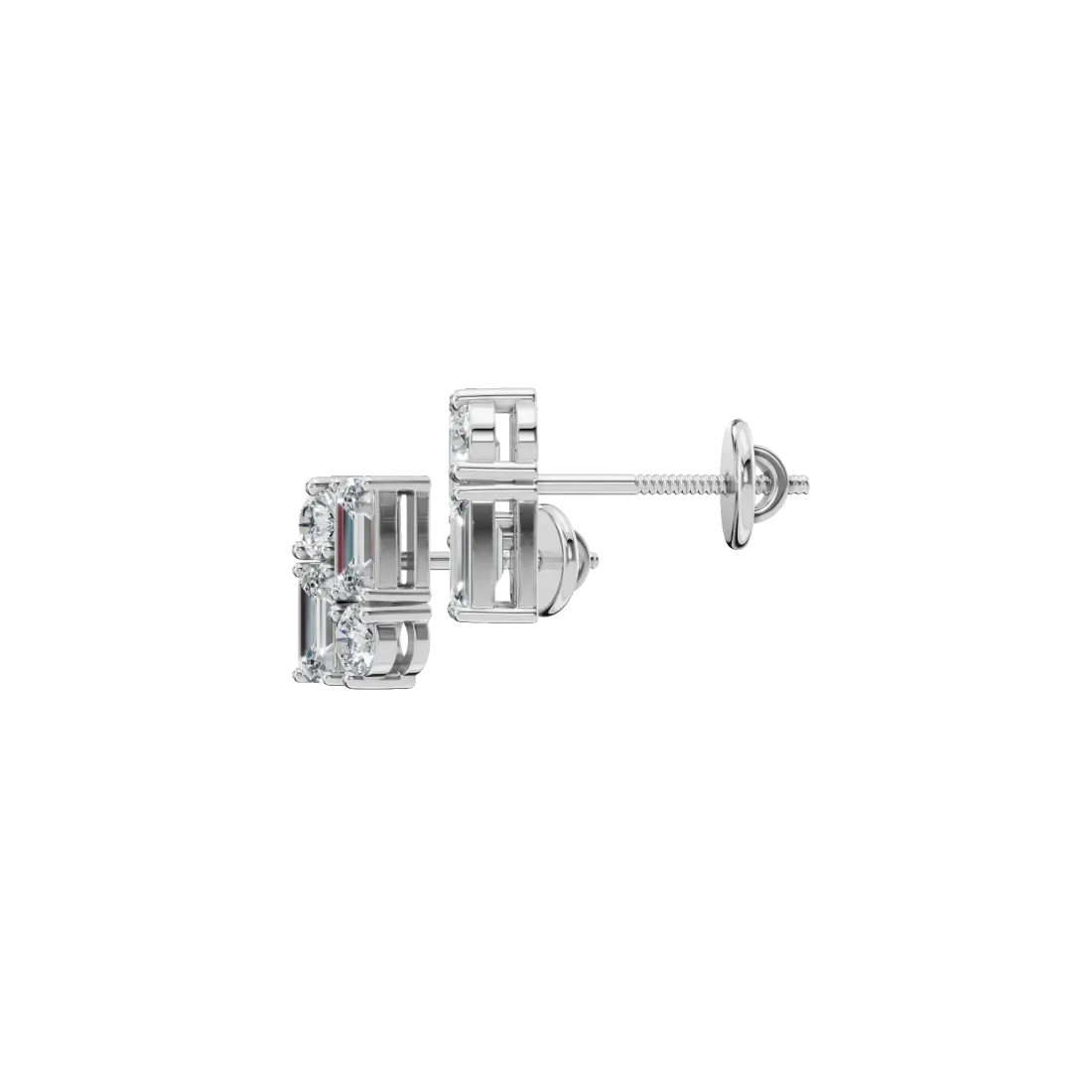 • Design: Four-stone geometric layout mixing emerald-cut and round diamonds